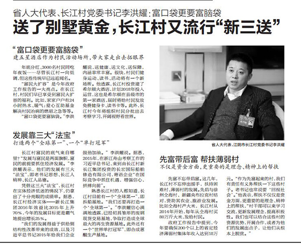 憑借這三大“法寶”,長江村在實(shí)體經(jīng)濟(jì)低迷的情況下,仍拿出了十分亮眼的成績單。據(jù)悉,長江村經(jīng)濟(jì)實(shí)體——新長江集團(tuán)2016年效益比2015年上升70%,今年的發(fā)展目標(biāo)更是霸氣地提出增長25%。